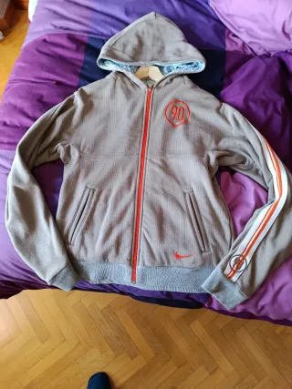 Sudadera con capucha de la marca Nike. - Diseño en color beige con detalles en gris. - Raya deportiva en las mangas.