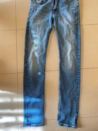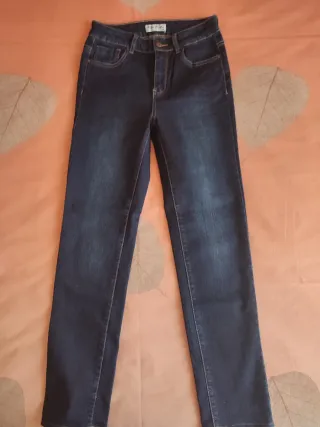 Vaqueros de corte recto en tono azul. - Cintura con cierre de botón y cremallera. - Bolsillos delanteros y traseros. Son para niños talla 25 w