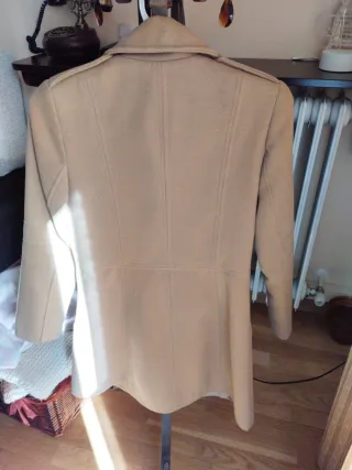 Elegante abrigo de corte clásico, perfecto para añadir un toque vintage a tu armario. Su diseño atemporal lo hace ideal para diversas ocasiones. Axila 56cm ✅️ Hombro 42cm ✅️ Largo 112 cm ➡️ Largo manga 63cm - Botones de color burdeos. - Bolsillos frontales. - Puños con detalle de botón.