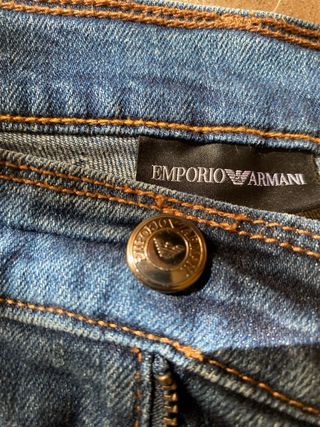 Vaqueros de la marca Emporio Armani para hombre. - Diseño clásico. - Tono azul desgastado. - Detalle de rotura en uno de los bolsillos.