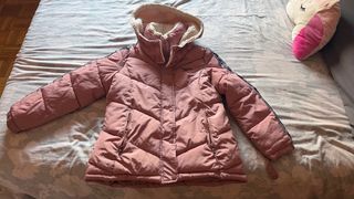 Abrigo acolchado con capucha de la marca Reebok. Presenta un diseño moderno y cálido. - Cierre de botones a presión. - Bolsillos laterales con cremallera. - Detalle de cinta lateral con logo. - Forro interior de borreguito en la capucha.