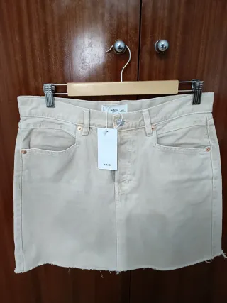 Falda vaquera de la marca Mango. - Diseño de corte recto. - Bajo deshilachado. - Bolsillos delanteros y traseros pongo fotos de medidas