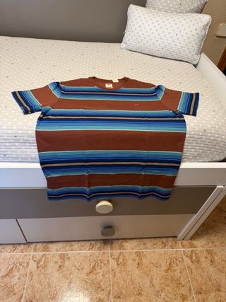 Camiseta de manga corta de la marca Levi's con un diseño de rayas. - Diseño a rayas horizontales. - Combinación de colores marrón y tonos azules.