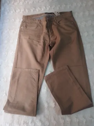 Pantalón de la marca Massimo Dutti en color marrón. - Diseño clásico y versátil. - Tejido de algodón resistente. - Bolsillos frontales y traseros.