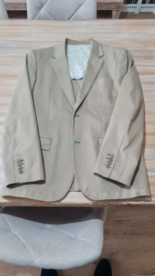 Americana de la marca Solera en color beige. Presenta un forro interior con un estampado floral discreto y detalles de color en los botones y ojales. - Forro interior estampado floral. - Botones de cierre frontal. - Puños con botones decorativos.