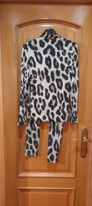 Conjunto de la marca Mango con estampado animal. Talla S, tejido finito - Tonos beige y marrón.