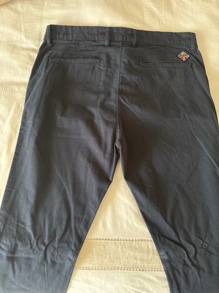 Chinos de verano de la marca Schott en color azul. Talla 33. Dobladillo para talla 30 - Tejido ligero y transpirable. - Cintura con trabillas para cinturón. - Cierre de cremallera y botón. - Bolsillos delanteros y traseros.