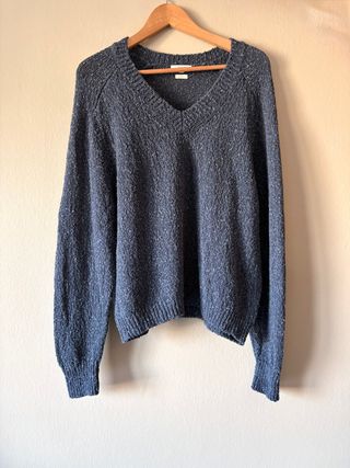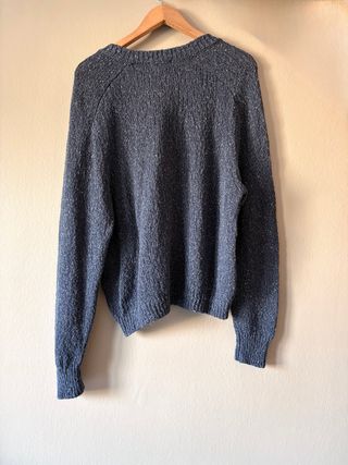 Jersey de la marca Yerse, ideal para un estilo casual. Mezcla de fibras naturales: Algodón, Lino y Seda. Estado impecable. - Tejido con textura moteada. - Cuello en pico. - Puños y bajo de canalé.