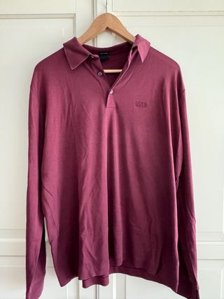 Polo de manga larga de la marca BOSS 100% algodón - Color burdeos. - Cuello camisero. - Cierre de botones.