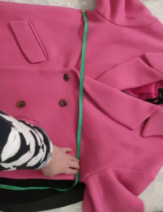 Abrigo de la marca Pinko en color rosa. Diseño elegante y moderno. Talla 46 italiana. Talla muy grande para ser una 42 española - Doble botonadura. - Bolsillos frontales. - Cuello solapa.