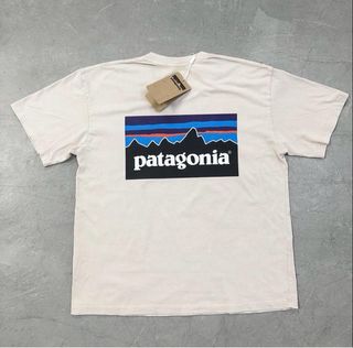 Camiseta de manga corta de la marca Patagonia en color beige. Presenta un diseño minimalista con el logo de la marca bordado en el pecho. - Logo de Patagonia bordado. - Cuello redondo. - Manga corta.