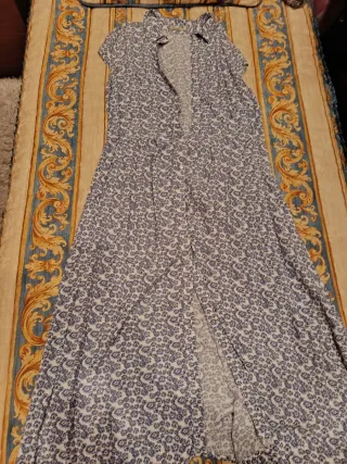 Vestido largo con estampado floral en tonos azules y blancos. Presenta un diseño camisero con botones frontales y manga corta. - Estampado floral. - Cuello camisero. - Cierre de botones. - Manga corta. - con cinturon
