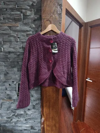 Jersey de punto de la marca Cortefiel en talla XL. Es una prenda de manga larga con cuello redondo y cierre de botones. - Diseño de punto con textura. - Tres botones frontales. - Corte abierto en la parte delantera.