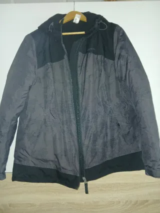 Chaqueta de la marca Quechua, ideal para el día a día. - Diseño bicolor en negro y gris. - Cierre de cremallera frontal. - Capucha integrada.