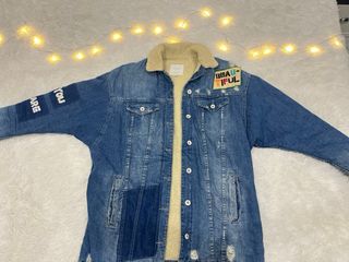Cazadora vaquera denim larga con borrego borreguito parches en azul lavado claro blanco. Marca Zara. Talla: M mujer En muy buen estado. Súper estilosa, da un toque diferente a tu outfit look con colores favorecedores. Con parches y dibujos que la hacen muy diferente. Todas las prendas se envían lavadas 🧼🫧. Hago LOTES y PACKS, pregúntame! ❗️ Echa un vistazo a mi armario, ropa muy barata y súper chula, y más cositas!!! 🤩😎👀✨💕