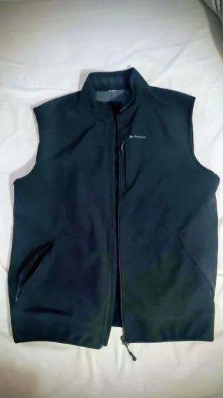 Chaleco deportivo de la marca Quechua. Comprado en Decathlon pero no tiene las etiquetas. Medidas en las ultimas fotos - Color negro. - Cierre de cremallera frontal. - Bolsillos laterales con cremallera.
