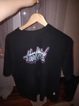 Camiseta ancha y cómoda con un diseño llamativo en el pecho. - Logo con detalles en rosa y azul. - Corte holgado.