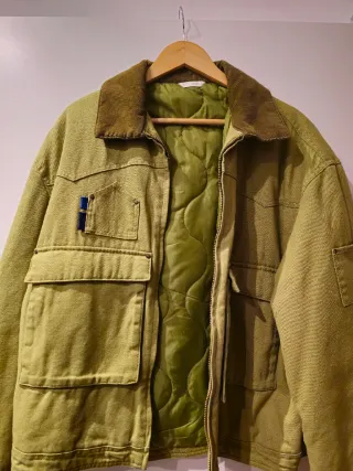 Abrigo de la marca Zara en color verde. Presenta un diseño moderno y funcional. - Cuello de pana. - Forro interior acolchado. - Bolsillos frontales. - Detalle de parche en bolsillo. Lo compré y me quedó grande. No lo use nunca.
