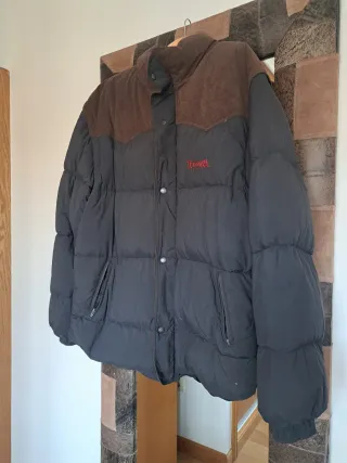 Plumífero de caballero de la marca Pelikan. - Color principal negro con detalles en marrón. - Diseño acolchado. - Cuello alto.