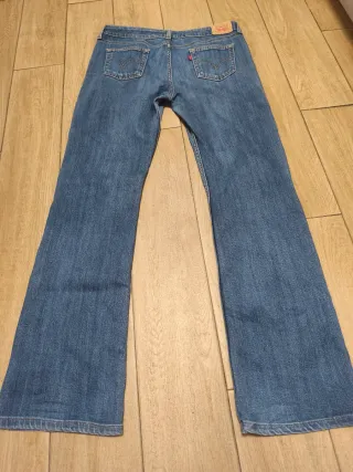 Vaqueros de corte clásico de la marca Levi's. -de tiro bajo,tiene pequeñas rozaduras en la costura gruesa de la entrepierna,nada roto - Tono azul denim. - Diseño de cinco bolsillos. - Cierre de cremallera y botón.