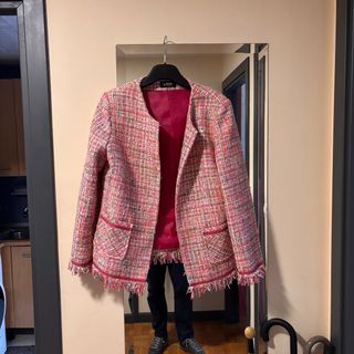 Chaqueta de la marca Look, con un diseño multicolor y detalles en rosa. - Tejido tweed con hilos metalizados. - Cuello redondo. - Cierre de gancho.