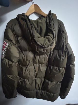 Chaqueta acolchada original Geographical Norway en color verde kaki. Muy abrigada y cómoda, ideal para invierno o climas fríos. Cuenta con los parches y bordados característicos de la marca, incluida la bandera de Noruega en el frontal. Ha sido usada solo un par de veces, por lo que se encuentra en estado impecable, prácticamente nueva, sin manchas, roturas ni signos de desgaste. Cremalleras y costuras en perfecto estado. Se vende por no darle uso. Lista para estrenar. Precio negociable