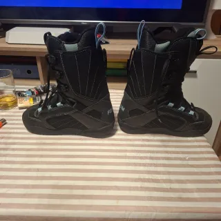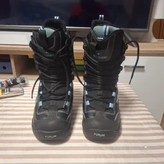 Botas de snowboard Forum para mujer en color negro y azul. Diseñadas para ofrecer comodidad y rendimiento en la montaña. - Cierre con cordones. - Detalle de logo en la lengüeta. - Suela con nombre de la marca. Se dispone de más equipo: tabla, fijaciones y ropa. Preguntar sin compromiso.