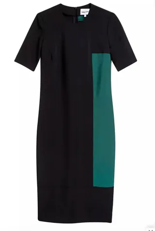 Vestido de la marca Bimba y Lola, con un diseño moderno y muy elegante. - Corte muy femenino - Tejido ajustable completamente a la línea del cuerpo. - Detalle de panel vertical en color verde. - Manga corta. - Cierre de cremallera en la espalda y lateral.