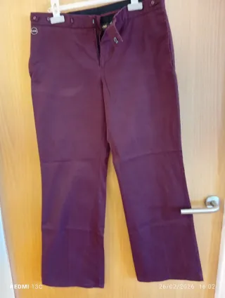 Pantalón de la marca Spagnolo en color verde.y otro granate - Talla 38. - Detalle de costuras blancas. - Etiqueta de la marca. - Cierre de botón y cremallera.