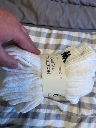 Pack de seis pares de calcetines blancos de la marca Capital Collection. - Diseño clásico y versátil. - Tejido suave y cómodo. - Talla EUR 40-45.