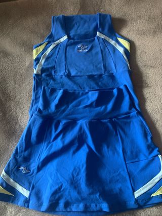 Conjunto deportivo de pádel para mujer de la marca NatFire. Diseñado para ofrecer comodidad y estilo en la pista. - Diseño con detalles en amarillo y blanco. - Tejido transpirable y ligero.