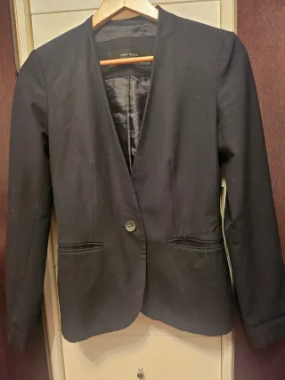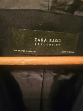 Americana entallada de la marca Zara. - Diseño moderno y elegante. - Cierre de un botón. - Bolsillos frontales. - Cuello mao.