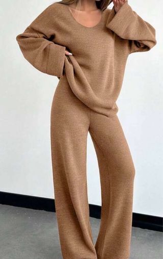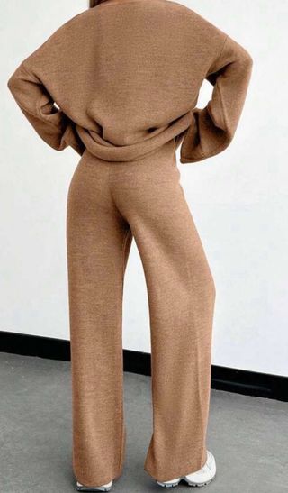 Conjunto de dos piezas de punto en color camel. talla 38/40. nuevo - Jersey de manga ancha. - Pantalón de pierna ancha.