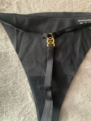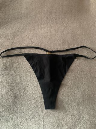 Tanga de color negro con un pequeño detalle dorado en la parte trasera. Es una prenda cómoda y discreta. - Varias tallas y colores - Tejido suave al tacto.