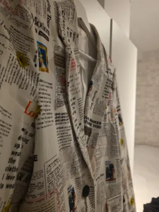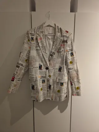 Americana de la marca Desigual con un llamativo estampado de periódico. - Diseño único y original. - Cierre de botón. - Bolsillos frontales. - Talla M