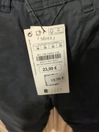 Pantalón chino de la marca Sfera. - Corte recto. - Tejido de algodón. - Cierre con cremallera y botón. - Bolsillos delanteros y traseros.