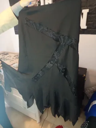 Falda larga de la marca Entredos con un diseño elegante y detalles de encaje. - Diseño asimétrico. - Adornos de encaje en diagonal. - Volante en el bajo.