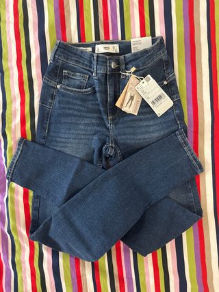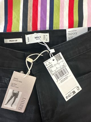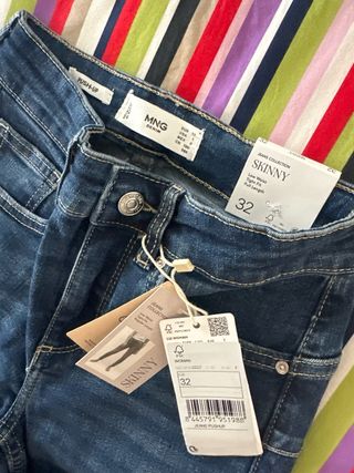 Vaqueros de corte skinny de la marca Mango. - Tiro alto. - Cierre con cremallera y botón. - Bolsillos delanteros y traseros.