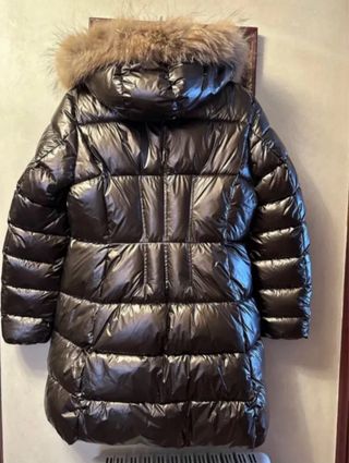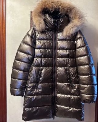 Abrigo largo de la marca Anna Moda Piu, perfecto para el frío. Talla L. ,da poca talla,es como una M. Nuevo!!!! - Diseño acolchado brillante. - Capucha con pelo. - Cierre de cremallera frontal. - Bolsillos laterales con cremallera.