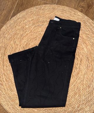Vaqueros de la marca Zara con un diseño único. - Detalle de brillos a lo largo de las perneras. - Corte moderno y favorecedor.