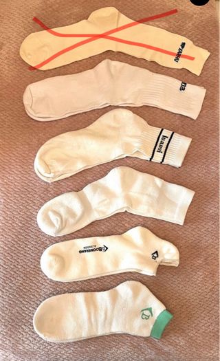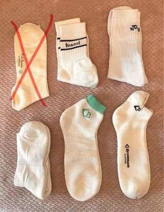 Lote de calcetines de algodón de diferentes marcas y estilos. - Calcetines de caña alta con logo “Joma”. - Calcetines de caña media “Luanvi” y “Mingo”. - Calcetines tobilleros con logo “Boomerang”. - A 2,5€ el par. 10€ los 5 pares. - Talla 42-43.
