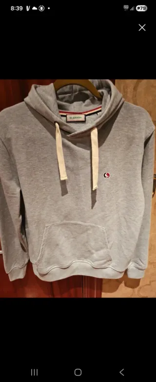Sudadera con capucha de la marca El Ganso. Talla M, sin estrenar - Color gris jaspeado. - Cordones de ajuste en la capucha. - Bolsillo canguro delantero. - Pequeño logo bordado en el pecho.