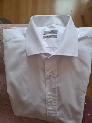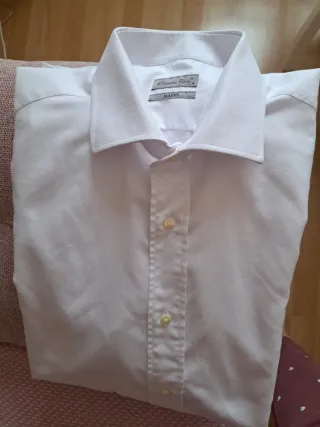 Camisa de vestir para caballero de la marca Emidio Tucci. Talla 4 ( equivale a una M)Un básico elegante para cualquier ocasión. Puesta una sola vez para una boda. - Cuello clásico. - Cierre de botones. - Tejido texturizado.
