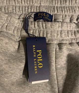 Pantalón de chándal de la marca Ralph Lauren. - Color gris jaspeado. - Cintura con cordón ajustable. - Bolsillos laterales. - Logo de la marca bordado en la pernera.