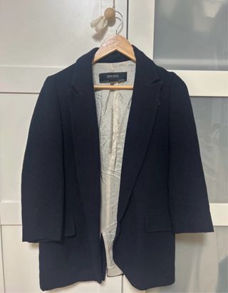 Americana de la marca Zara en color negro. Un clásico versátil para cualquier ocasión. - Diseño de corte recto. - Solapas de muesca. - Bolsillos frontales.