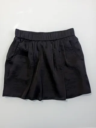 Falda corta de tela satinada con cintura elástica. - Diseño con bolsillos laterales. - Tiene forro. - Corte holgado y cómodo. Marca Nicoli , talla S 36 Como nueva