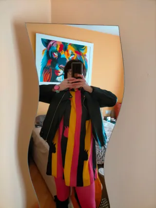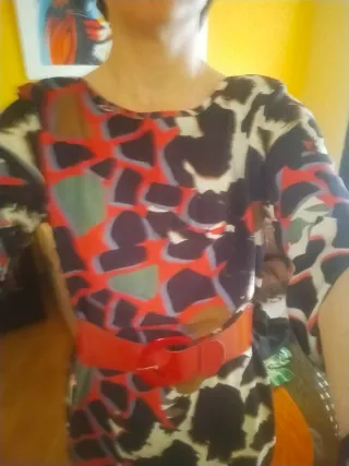 Vestido reversible de la marca L&C con un diseño vibrante y llamativo. - Estampado geométrico y animal print. - Manga francesa Es amplio, hace la silueta, es reversible, animal print y tejido parecido al neopreno. Por fuera es más colorido que por dentro, queda genial con una chaqueta y cinturón ancho. Las mangas son largo francés con un pequeño corte. La tela es elástica. Da talla.