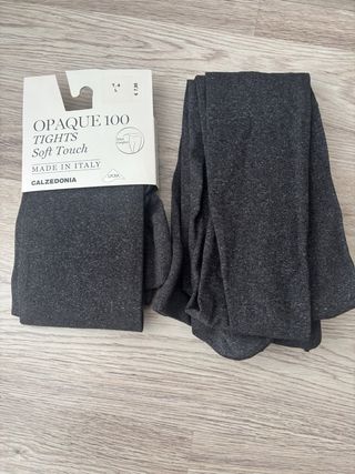 Medias opacas de la marca Calzedonia, con un tacto suave y acabado mate. - Talla 4. - Color gris jaspeado. - Fabricadas en Italia. Nuevas sin usar.