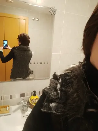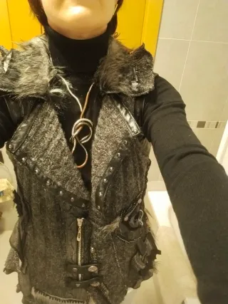 Chaleco de la marca Juju & Christine con un diseño único. - Detalle de pelo sintético en el cuello. - Cremallera frontal y detalles metálicos. - Estilo vanguardista y moderno. Poco usado, combinación de punto, polipiel y tela, muy original, llama la atención, sube cualquier look.