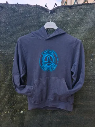 Sudadera con capucha de la marca Ternua. - Diseño con logo circular en azul. - Bolsillo frontal tipo canguro. Usada pero en buen estado. Es una talla 14 que equivale a una XS de adulto